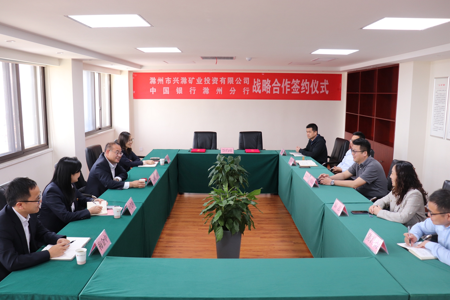 簽約儀式前,雙方進行了座談。鄭冬冬指出,市礦投公司在發(fā)展過程中,得益于中國銀行滁州分行的大力支持,在礦權(quán)收儲、礦山建設(shè)等方面,均呈現(xiàn)較好發(fā)展趨勢。