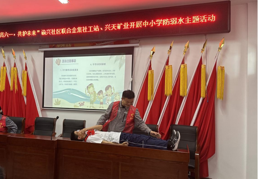 活動現(xiàn)場,興天礦業(yè)志愿者通過發(fā)放防溺水知識手冊、播放防溺水科普視頻以及演示心肺復(fù)蘇等方式科普了基本防溺水及救護常識,有效提高在場學生防溺水意識。